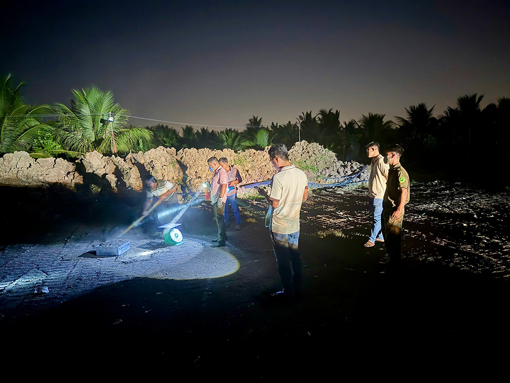 Lực lượng chức năng thu mẫu tại các điểm để giám định.