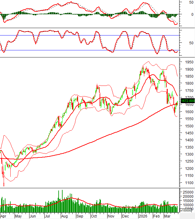 VN-Index tăng điểm trở lại sau khi test đường SMA 50 tuần, tuy nhiên thanh khoản cần cải thiện để củng cố đà phục hồi. Trong bối cảnh chỉ số vẫn nằm dưới đường Middle của Bollinger Bands và các chỉ báo Stochastic Oscillator, MACD tiếp tục suy yếu sau tín hiệu bán, trạng thái rung lắc và giằng co nhiều khả năng sẽ còn tiếp diễn trước khi xu hướng rõ ràng hơn được xác lập.