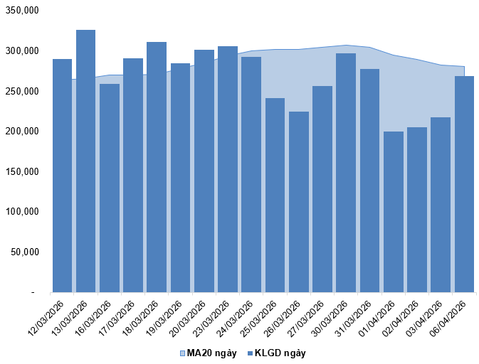 Trong phiên giao dịch ngày 06/04/2026, VN30-Index diễn biến giằng co đồng thời xuất hiện mẫu hình nến thân nhỏ kèm theo khối lượng sụt giảm và nằm dưới mức trung bình 20 phiên cho thấy tâm lý thận trọng của nhà đầu tư.