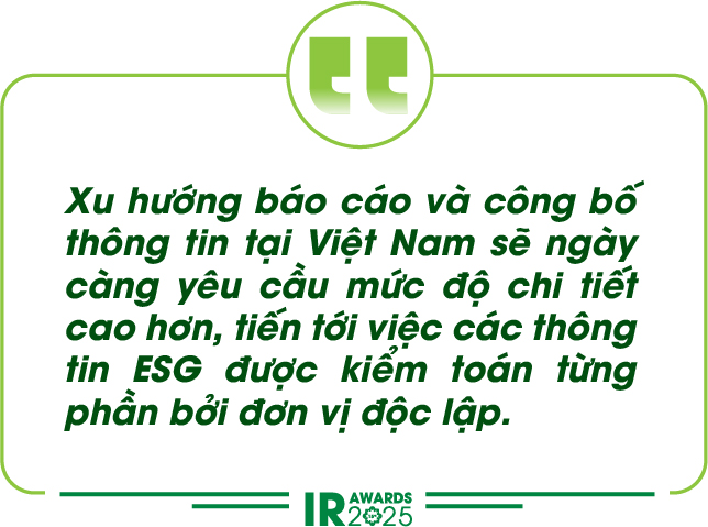 Xu hướng báo cáo và công bố thông tin tại Việt Nam sẽ ngày càng yêu cầu mức độ chi tiết cao hơn, tiến tới việc các thông tin ESG được kiểm toán từng phần bởi đơn vị độc lập.