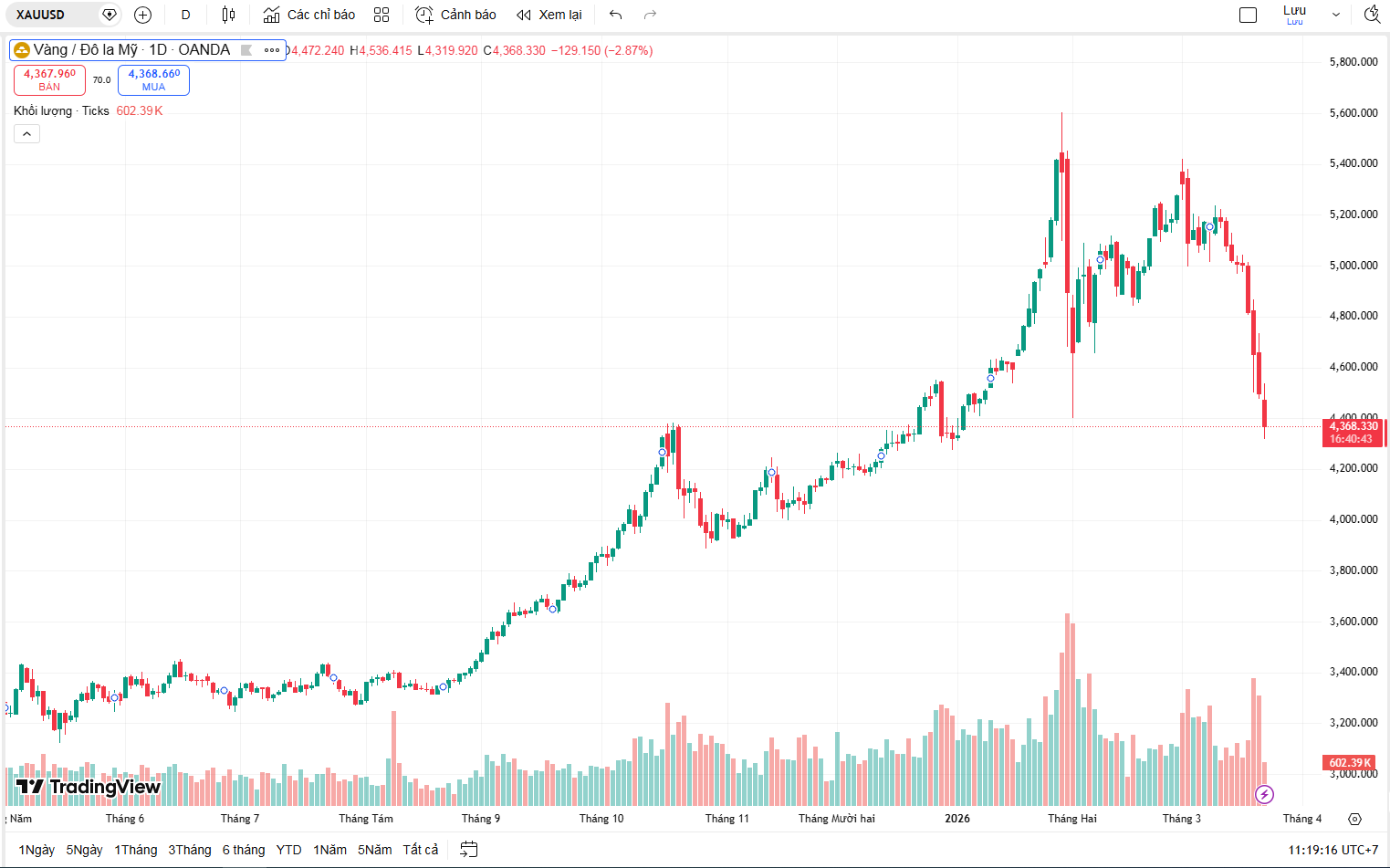 Marc Chandler, Giám đốc điều hành Bannockburn Global Forex, là một trong những chuyên gia nghiêng về kịch bản kém tích cực. Ông cảnh báo nếu giá xuyên thủng vùng đáy đầu tháng 2 (quanh 4.400 USD), xu hướng giảm có thể mở rộng về 4.100 USD một ounce.