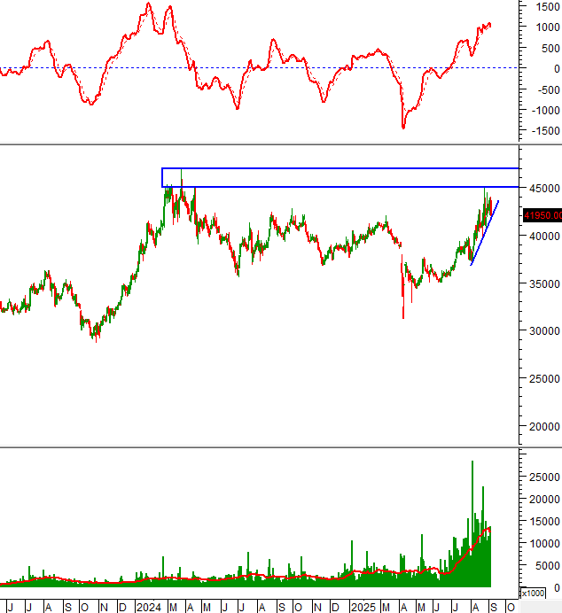 Đỉnh cũ tháng 03/2024 (tương đương vùng 45,000-47,000) sẽ tiếp tục là kháng cự mạnh.