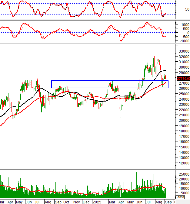 Chỉ báo Stochastic Oscillator đã cho tín hiệu mua trong vùng oversold. MACD cũng đảo chiều và có thể cho tín hiệu tương tự trong tuần sau. Việc mua vào khi giá ở gần vùng 26,000-27,500 được ủng hộ.
