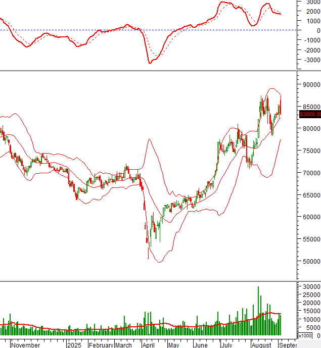 Tuy nhiên, giá vẫn đang nằm trên đường Middle của Bollinger Bands nên rủi ro ngắn hạn không lớn.