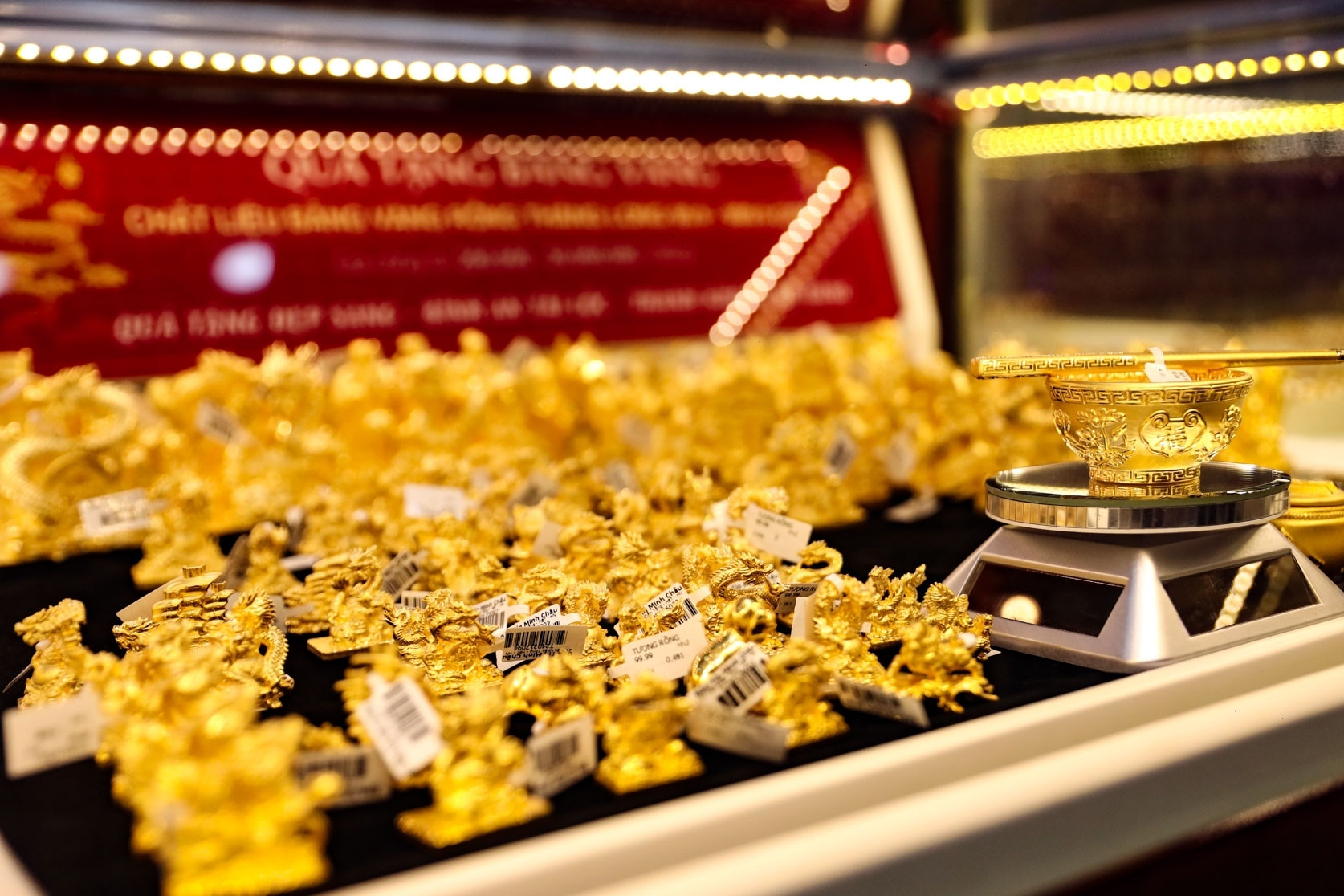 Sáng 30/10, vàng thế giới quy đổi theo giá USD ngân hàng ở mức giá hơn 126,6 triệu đồng/lượng, đã bao gồm thuế và phí, thấp hơn khoảng 20 triệu đồng/lượng so với giá vàng trong nước.