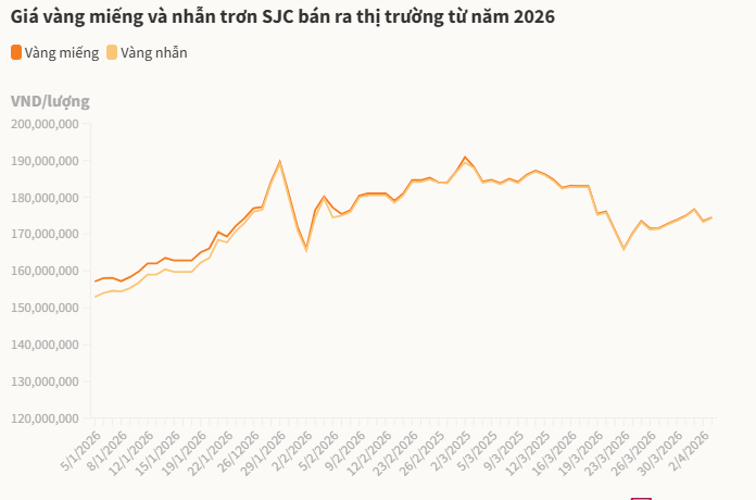 Sáng 3/4, Công ty Vàng bạc đá quý Sài Gòn (SJC) niêm yết giá vàng miếng tại 171 – 174,5 triệu đồng. Các thương hiệu khác cũng điều chỉnh tương tự SJC.