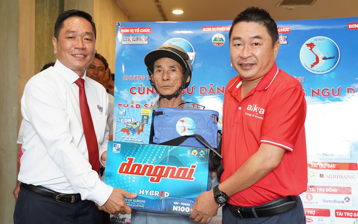 100 ngư dân được trao tặng bình ắc quy, pin đèn, tủ thuốc… tại chương trình “Cùng ngư dân thắp sáng đèn trên biển” tổ chức ở tỉnh Gia Lai ngày 26-9.