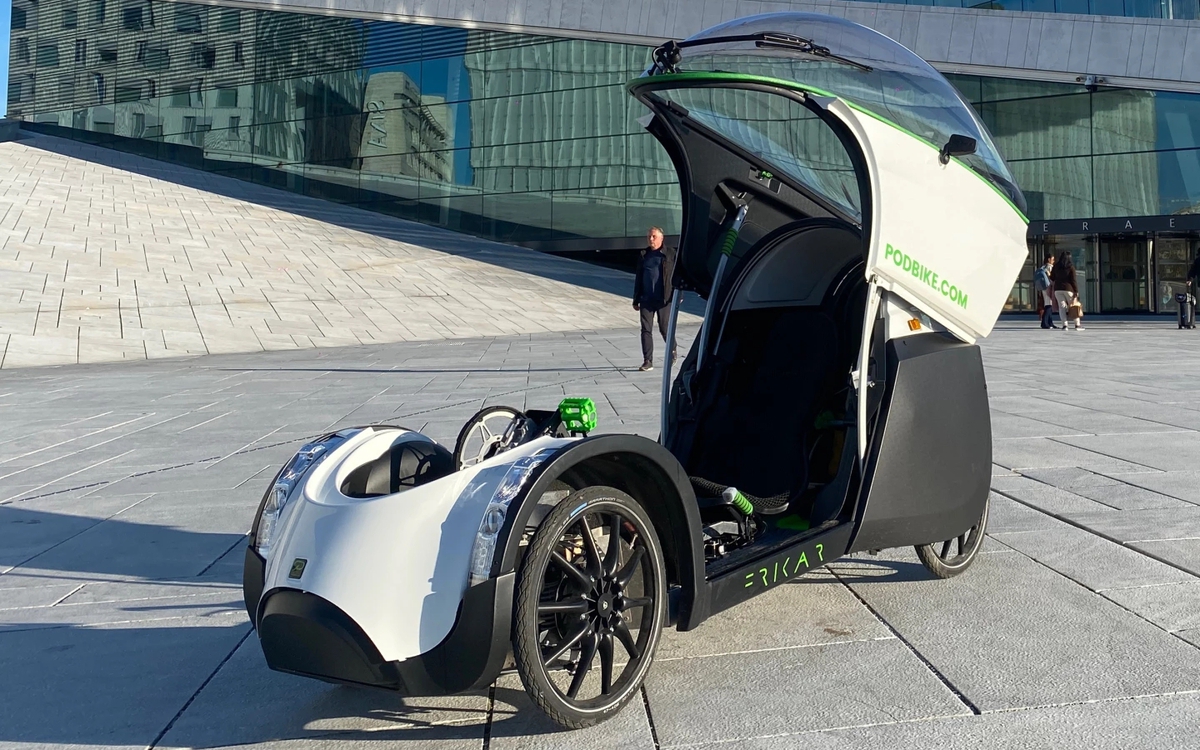 Mẫu xe đạp điện TwoZero gây chú ý với khoang lái khép kín bằng mái che trong suốt, tích hợp quạt và bộ lọc không khí, vừa chống mưa gió vừa phù hợp di chuyển đô thị.