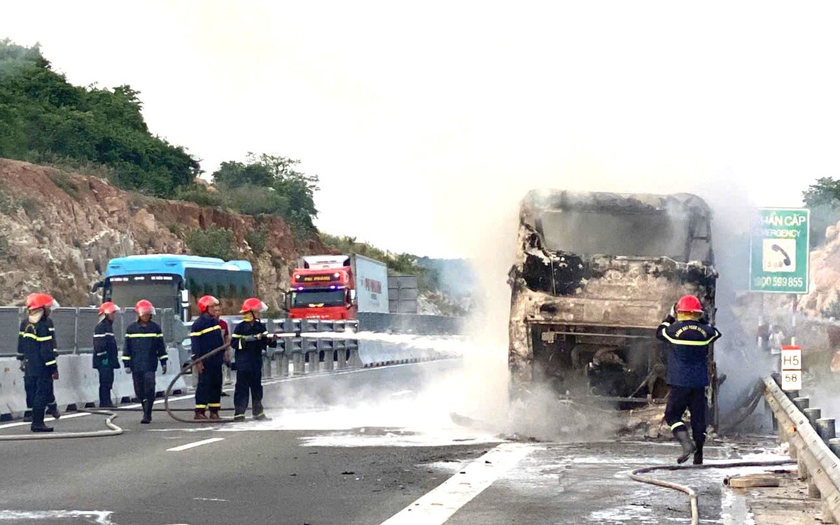 Xe khách cháy trơ khung trên cao tốc Nha Trang – Cam Lâm, 30 người may mắn thoát nạn