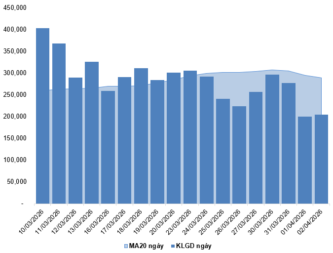 Trong phiên giao dịch ngày 02/04/2026, VN30-Index giảm điểm đồng thời xuất hiện mẫu hình nến thân nhỏ cho thấy diễn biến giằng co vẫn diễn ra.