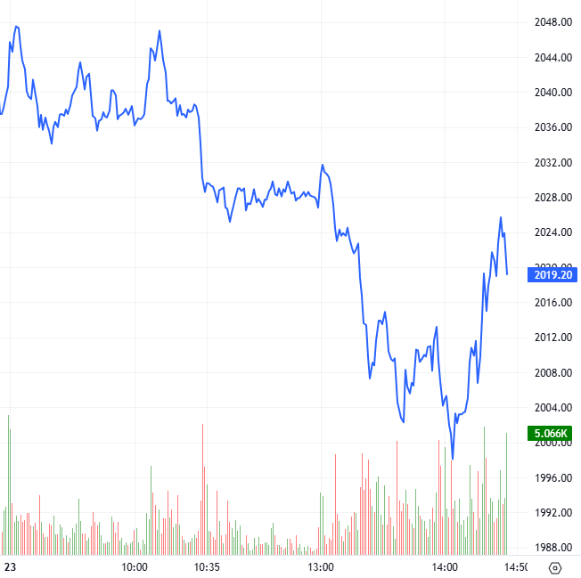 Trong phiên giao dịch ngày 23/04/2026, hợp đồng 41I1G5000 diễn biến giằng co quanh mốc tham chiếu trong nửa đầu phiên nhưng phe Short dần chiếm vị thế lấn lướt khiến I1G5000 đảo chiều giảm điểm trong thời gian còn lại của phiên sáng. Bước sang đầu phiên chiều, lực bán tiếp tục gia tăng nhưng bên mua xuất hiện trở lại giúp hợp đồng này phục hồi và thu hẹp đà giảm vào cuối phiên. Qua đó, 41I1G5000 đóng cửa trong sắc đỏ tại mốc 2,019.2 điểm, giảm 21.4 điểm.