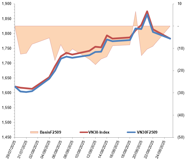 Chứng khoán phái sinh ngày 26/08/2025: Triển vọng ngắn hạn ngày càng bi quan