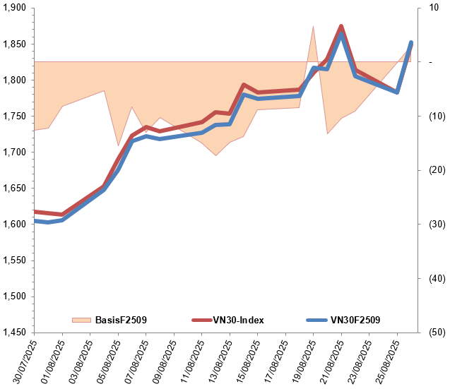 Chứng khoán phái sinh ngày 27/08/2025: Xuất hiện các tín hiệu trái chiều