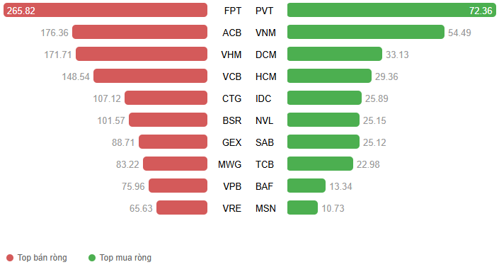 – Khối ngoại đẩy mạnh bán ròng với giá trị hơn 1.6 ngàn tỷ đồng trên sàn HOSE và 43 tỷ đồng trên sàn HNX.