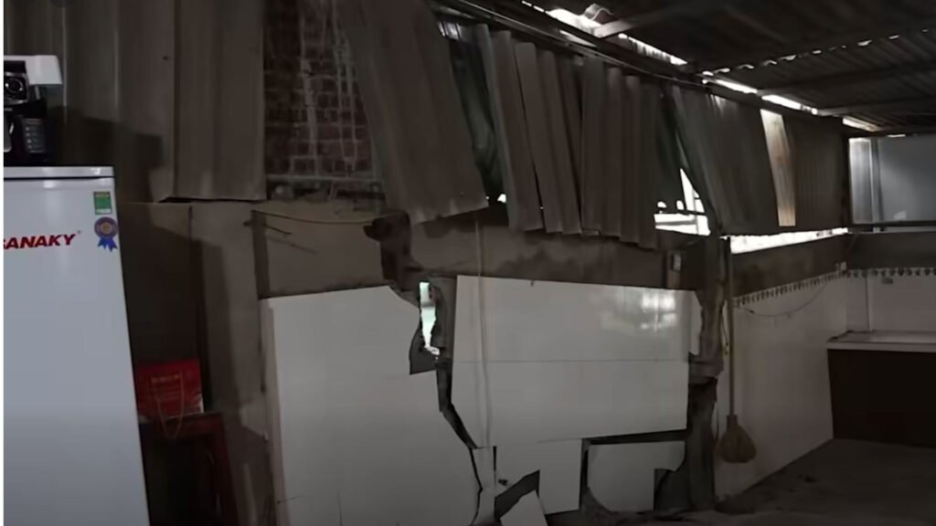 Sạt lở tại đê tả sông Thao khiến nhiều nhà dân bị sụt lún, tường nứt toác. Ảnh: Phường Phong Châu