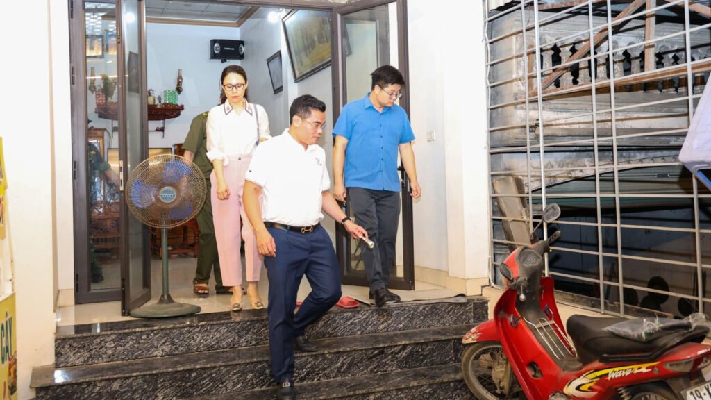 Ông Nguyễn Đức Lương, Bí thư Đảng ủy phường Phong Châu kiểm tra hiện trạng sự cố sạt lở. Ảnh: Phường Phong Châu